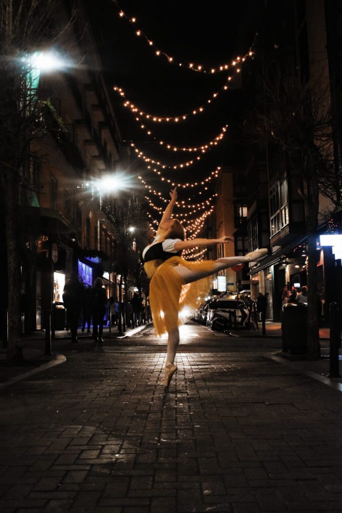 «Luces» es un reportaje fotográfico que surgió de la idea de usar el dulce entorno de las luces navideñas, que decoran la ciudad de Santander, para resaltar el arte de la danza.